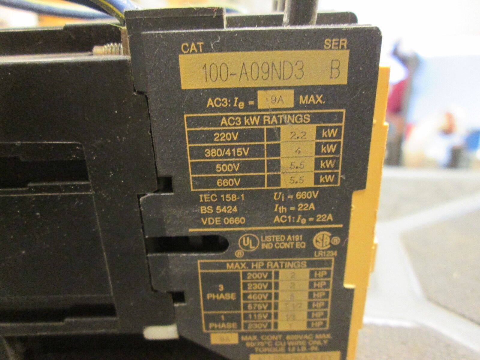 Allen-Bradley Contactor 100-A09ND3 195-FA22 Contact Block 9A 600V 120V Coil Used