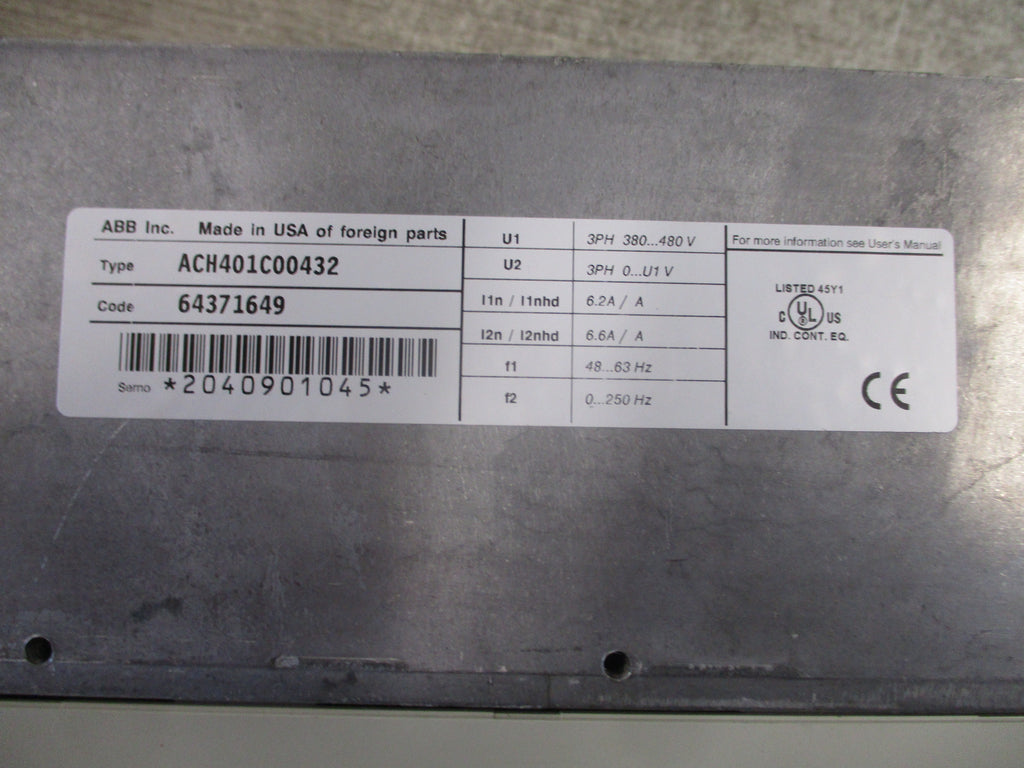 ABB ACH401 AC Drive ACH401C00432 3HP 3Ph *No Keypad* *Broken Cover Latch* Used