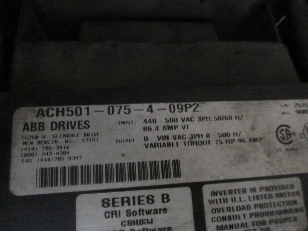 ABB ACH500 AC Drive ACH501-075-4-09P2 75HP 3Ph Input: 440-500V 50/60Hz Used