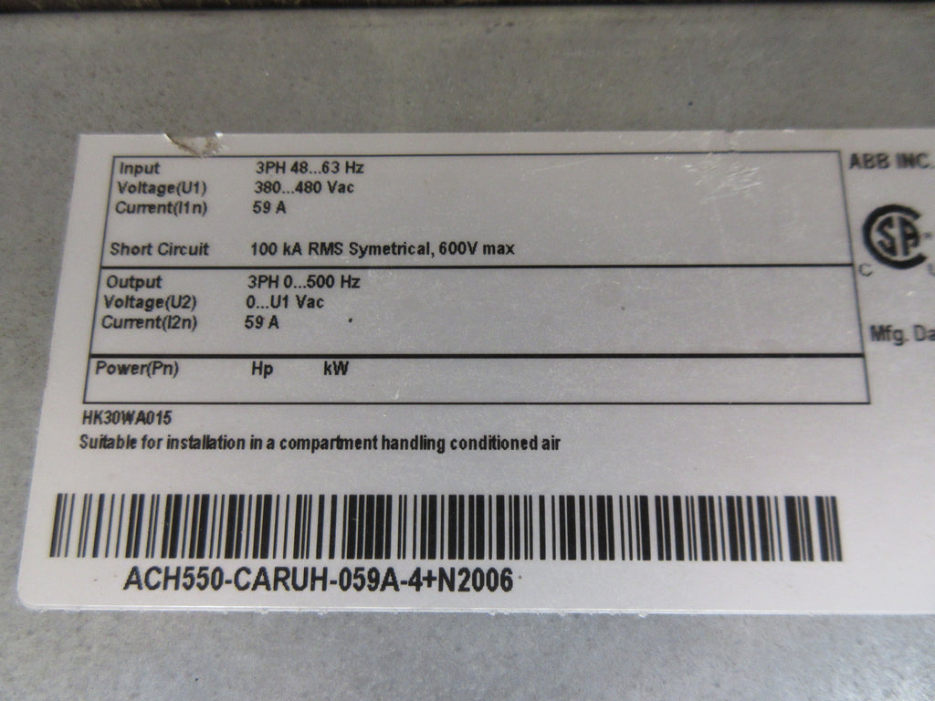 ABB ACH550 AC Drive Part #: ACH550-CARUH-059A-4+N2006 40 HP ...
