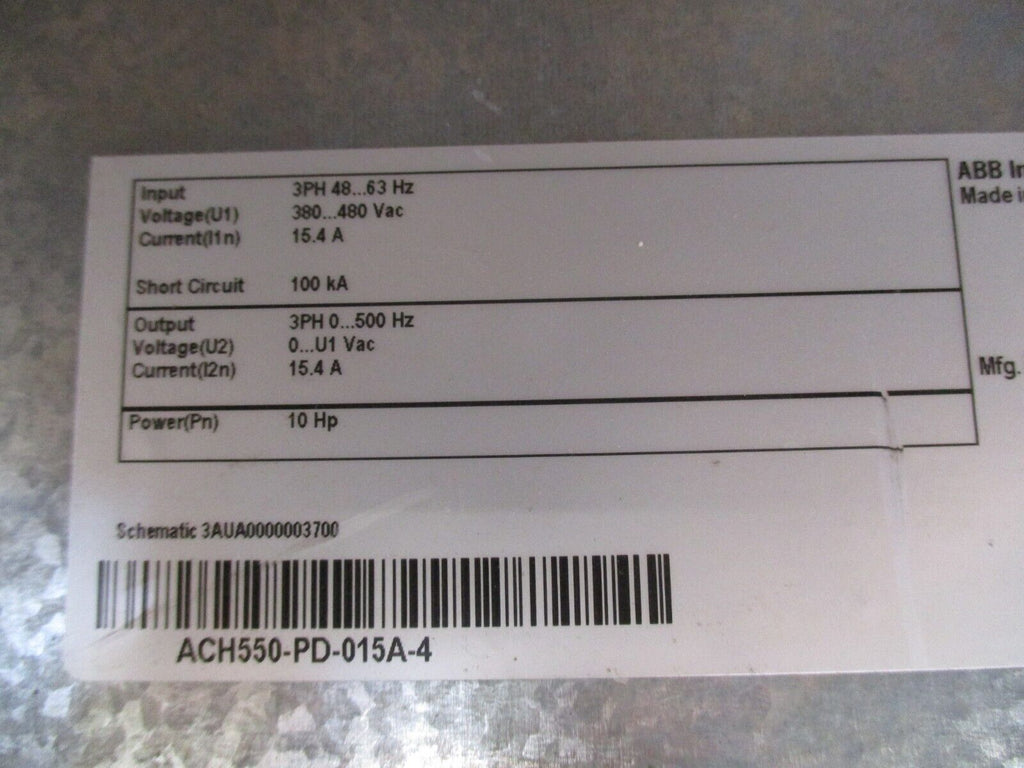 ABB ACH550 AC Drive ACH550-PD-015A-4 10HP 3Ph w/ Disconnect *No Keypad* Used_x000D_ Condition: UsedBrand: ABBType: General Purpose AC DriveMaximum Load: 10 HPMPN: ACH550-PD-015A-4Input Voltage: 380/480 V ABB ACH550 AC Drive ACH550-PD-015A-4 10HP 3Ph w/ Disconnect *No Keypad* Used ABB ACH550 AC Drive Part #: ACH550-PD-015A-4 10 HP 3Ph Input:48-63 Hz380-480 VAC15.4 AOutput:0-500 Hz0-U1 VAC15.4 Aw/ Disconnect *No Keypad**Missing (1) Cover Screw* Used Loc: AB11-5725 / AB8F4 ABB ACH550 AC Drive Part #: ACH550-PD-015A-4 10 HP 3Ph Input: 48-63 Hz 380-480 VAC 15.4 A Output: 0-500 Hz 0-U1 VAC 15.4 A w/ Disconnect *No Keypad* *Missing (1) Cover Screw* Uséd Loc: AB11-5725 / AB8F4