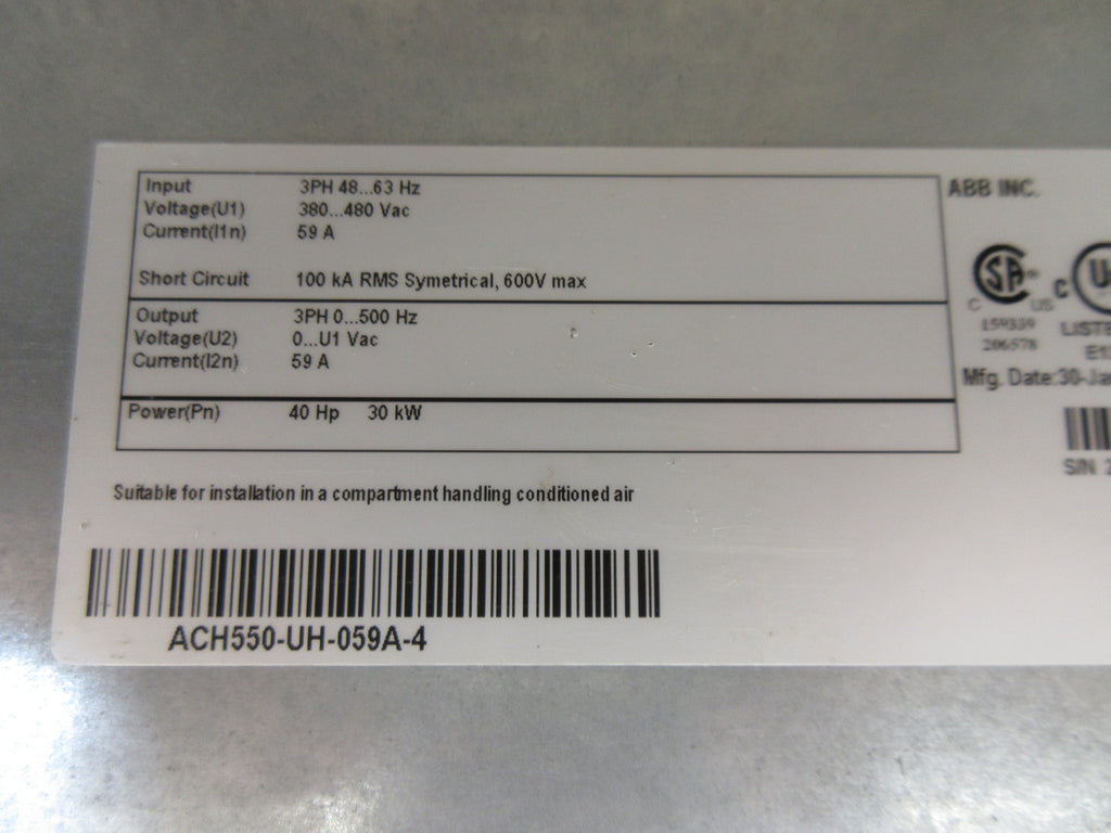 ABB ACH550 AC Drive ACH550-UH-059A-4 40 HP 3Ph Input: 48-...