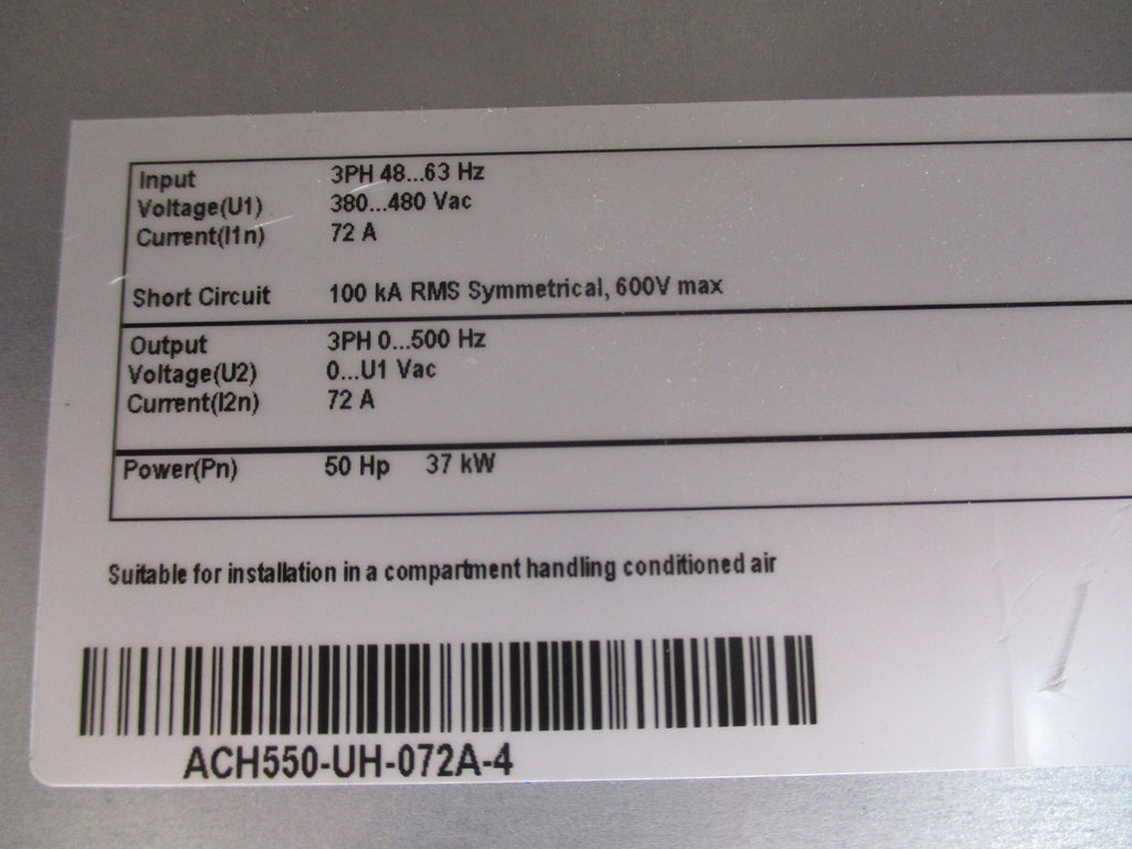 ABB ACH550 AC Drive Part #: ACH550-UH-072A-4 50 HP 3Ph Input:...