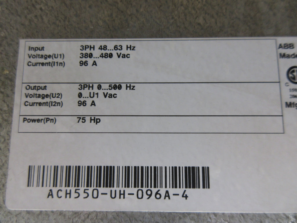 ABB ACH550 AC Drive Part #: ACH550-UH-096A-4 75 HP 3Ph Inp...