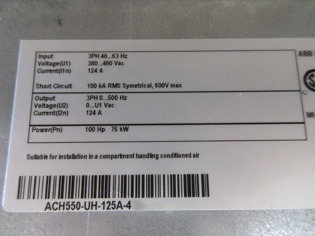 ABB ACH550 AC Drive Part #: ACH550-UH-125A-4 100 HP 3Ph In...