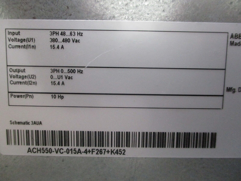 ABB ACH550 AC Drive w/ Bypass ACH550-UC-015A-4-F267+K452 10HP 3Ph Used_x000D_ Condition: UsedMaximum Load: 10 HPMPN: ACH550-UC-015A-4-F267+K452Brand: ABB ABB ACH550 AC Drive w/ Bypass ACH550-UC-015A-4-F267+K452 10HP 3Ph Used ABB ACH550 AC Drive w/ Bypass Part #: ACH550-UC-015A-4-F267+K452 10HP 3Ph Input:48...63Hz380....480V15.4AOutput:0...500Hz0...U1 V15.4AUsed*No Keypad*LOC AB11-1063 / AB37I2/AB39H3 ABB ACH550 AC Drive w/ Bypass Part #: ACH550-UC-015A-4-F267+K452 10HP 3Ph Input: 48...63Hz 380....480V 15.4A Output: 0...500Hz 0...U1 V 15.4A Uséd *No Keypad* LOC AB11-1063 / AB37I2/AB39H3