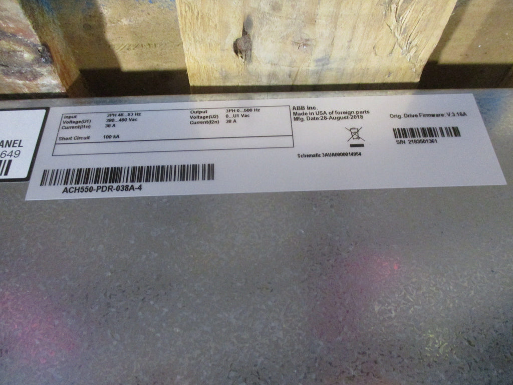 ABB ACH550 AC Drive W/Disconnect ACH550-PDR-038A-4 25HP 3Ph Input: 3PH 48-63Hz 380-480VAC 38A Output: 3PH 0-500Hz 0-U1VAC 38A W/Keypad Used
