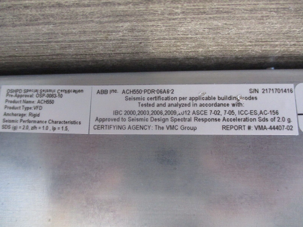 ABB ACH550 AC Drive w/Disconnect Part #: ACH550-PDR-06A6-2 1.5HP 3Ph Input: 48...63 Hz / 208...240 Vac / 6.6 A / 100 KA Output: 0...500 Hz / 0...U1 Vac / 6.6 A w/ Keypad Used LOC AB11-7544 / AB34A3