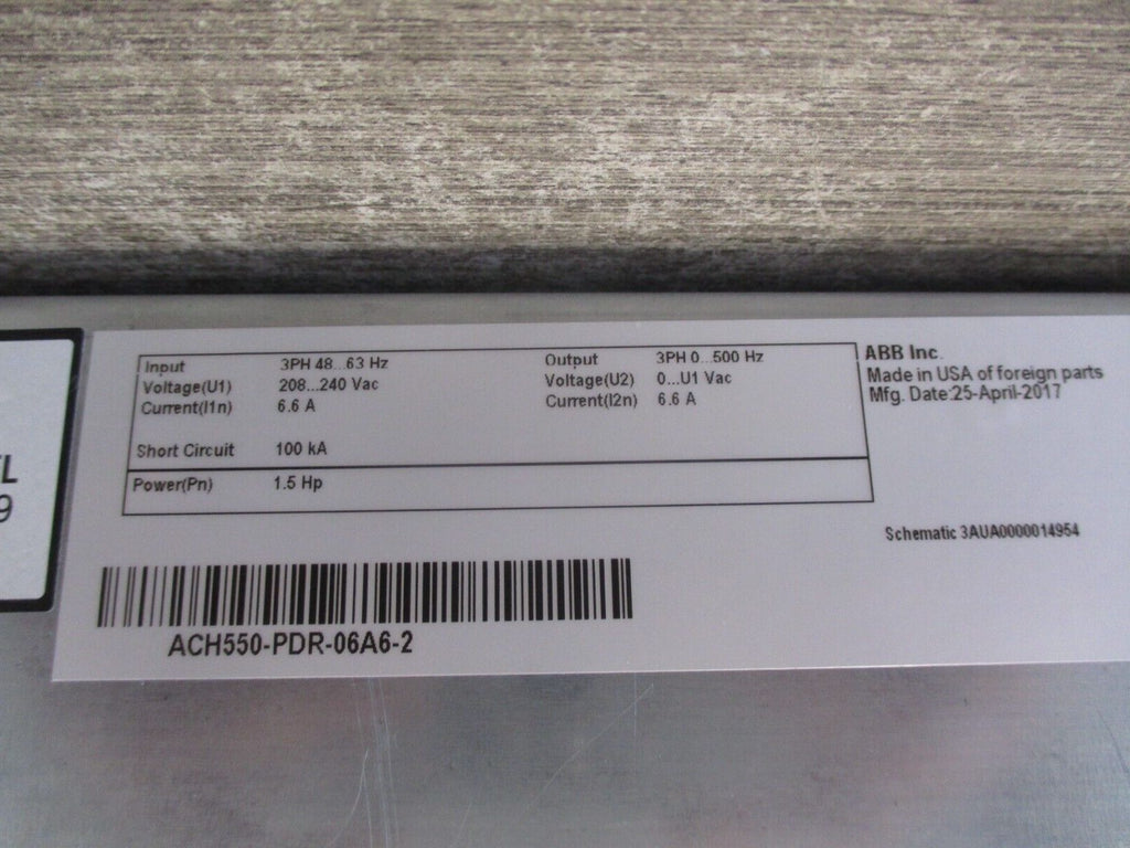 ABB ACH550 AC Drive W/Disconnect ACH550-PDR-06A6-2 1.5HP 3Ph