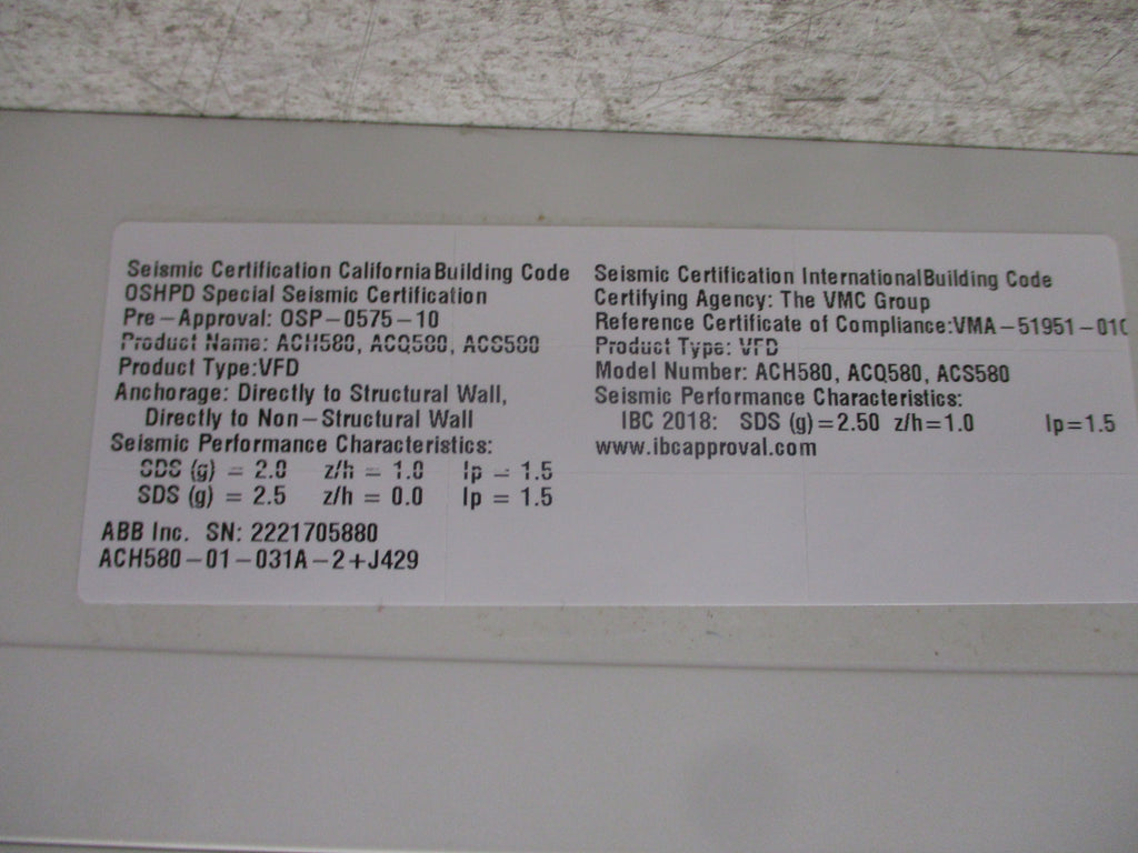 ABB ACH580 AC Drive ACH580-01-031A-2+J429 10HP 3Ph
