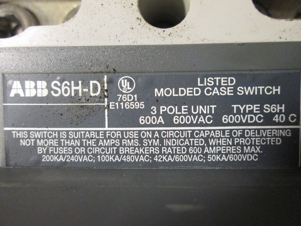 ABB Breaker Disconnect Switch S6H-D SACE S6 600A 600V 3P Used