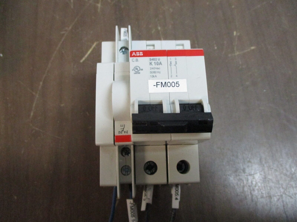 ABB Circuit Breaker S402 U K10A 10A 240V 2P w/ Aux Used_x000D_...