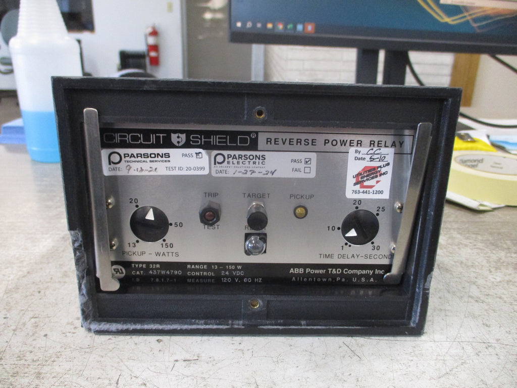 ABB Circuit Shield Reverse Power Relay Part #: 437W4790 24VDC Control Range: 13-150W *No Cover* *Scraped Front Bezel* Used LOC 56D2-17