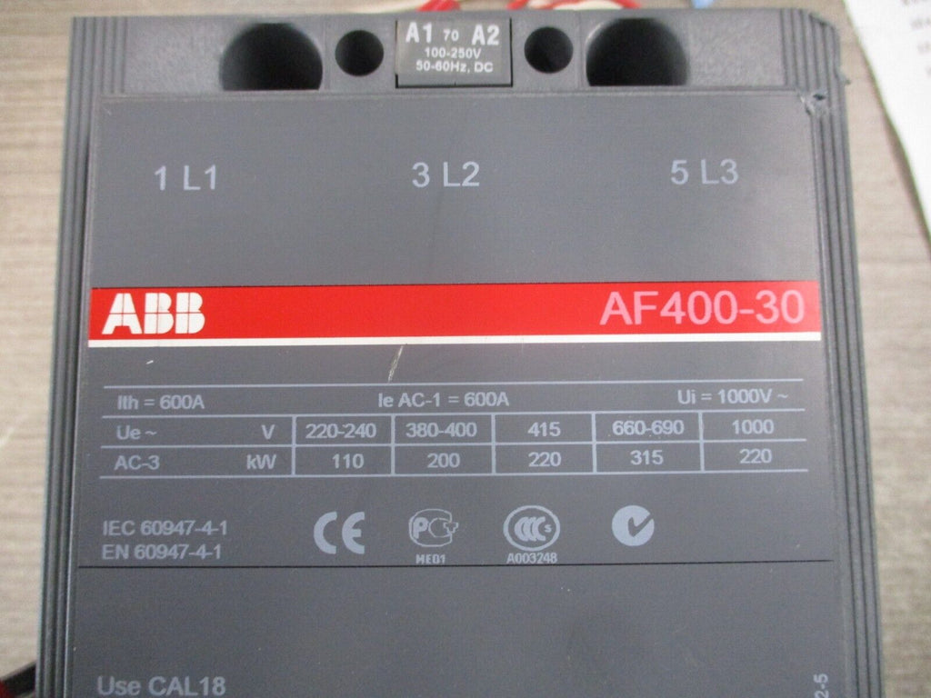 ABB Contactor AF400-30 600V 550A 100-250V AC/DC Coil *Chipped Insulator* Used