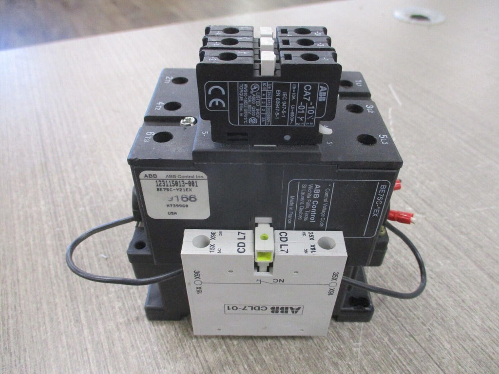 ABB Contactor BE75 24VDC Coil 105A 600V w/3 Aux Contact w/Aux Contact Block Used Condition: UsedBrand: ABBCoil Voltage: 24 VCurrent Rating: 105 AMPN: BE75Maximum Amperage: 105 A ABB Contactor BE75 24VDC Coil 105A 600V w/3 Aux Contact w/Aux Contact Block Used ABB Contactor Part #: BE75 24VDC Coil 105A 600V w/ 3 Aux Contact w/ (2) Aux Contact Blocks UsedLOC: 28G4-35 ABB Contactor Part #: BE75 24VDC Coil 105A 600V w/ 3 Aux Contact w/ (2) Aux Contact Blocks Uséd LOC: 28G4-35