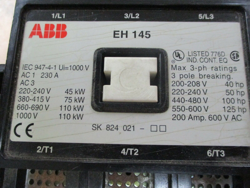 ABB Contactor EH 145 200A 600V *No Coil* Used ABB Contactor Part #: EH 145 200A600V Used*No Coil*LOC 22B4-31 ABB Contactor Part #: EH 145 200A600V Uséd*No Coil*LOC 22B4-31