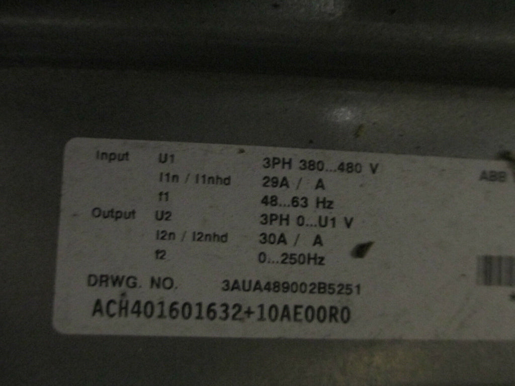 ABB Drive W/ Bypass ACH401601632+10AE00R0 480V 30A 3PH 18HP Used_x000D_ Condition: UsedBrand: ABBModel: Drive With BypassMPN: ACH401601632+10AE00R0 ABB Drive W/ Bypass ACH401601632+10AE00R0 480V 30A 3PH 18HP Used Condition: UsedBrand: ABBModel: Drive With BypassMPN: ACH401601632+10AE00R0ABB Drive W/ Bypass Part # ACH401601632+10AE00R0 18 HP Inputs 280-480V 29A 48-63Hz 3 Ph Outputs 0-480V 30A 0-250Hz 3Ph Bottom Feet are a little bent Used Loc 7D2-7 / AB1J2-2