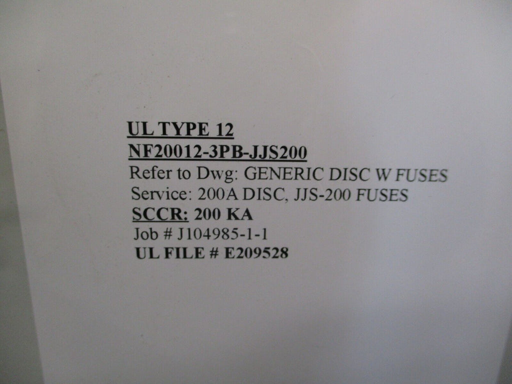 ABB Enclosed Disconnect w/ Fuses NF20012-3PB-JJS200 200A 3P JJ...