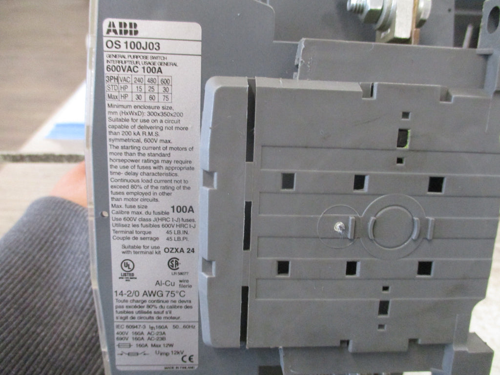 ABB Fusible Disconnect Switch OS 100J03 100A 600V 3P (3) 100A Fuses