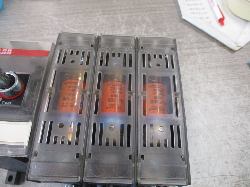 ABB Fusible Disconnect Switch OS 100J03 100A 600V 3P (3) 100A Fuses W/Fuse Covers Used LOC 56D5-8