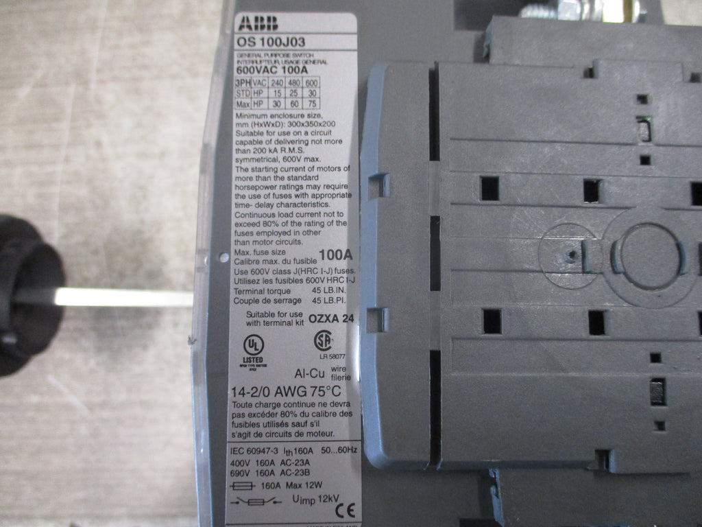 ABB Fusible Disconnect Switch OS 100J03 100A 600V 3P (3)...