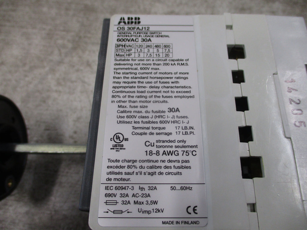 ABB Fusible Disconnect Switch OS 30FAJ12 30A 600V 3P (3)...
