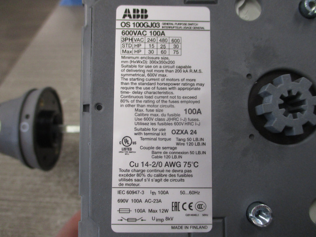 ABB Fusible Disconnect Switch OS100GJ03 100A 600V 3P (3)...