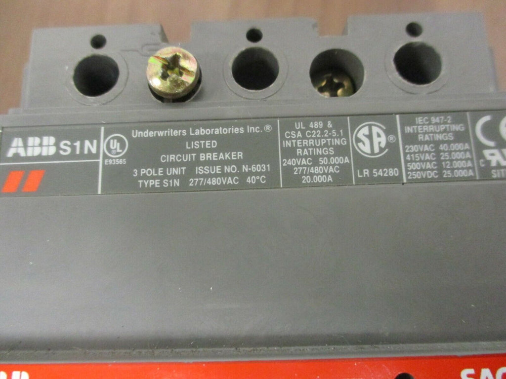 Condition: UsedCurrent Rating: 60 AMPN: S1NBrand: ABBABB HACR Circuit Breaker Part #: S1N 60A 240/277/480V 3P Used LOC 25A3-23