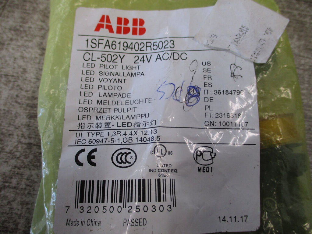 ABB LED Pilot Light 1SFA619402R5023 24V AC/DC Yellow *Bag of 5* New Surplus_x000D_ ABB LED Pilot Light 1SFA619402R5023 24V AC/DC Yellow * Bag of 5* New Surplus LOC 27I5-49