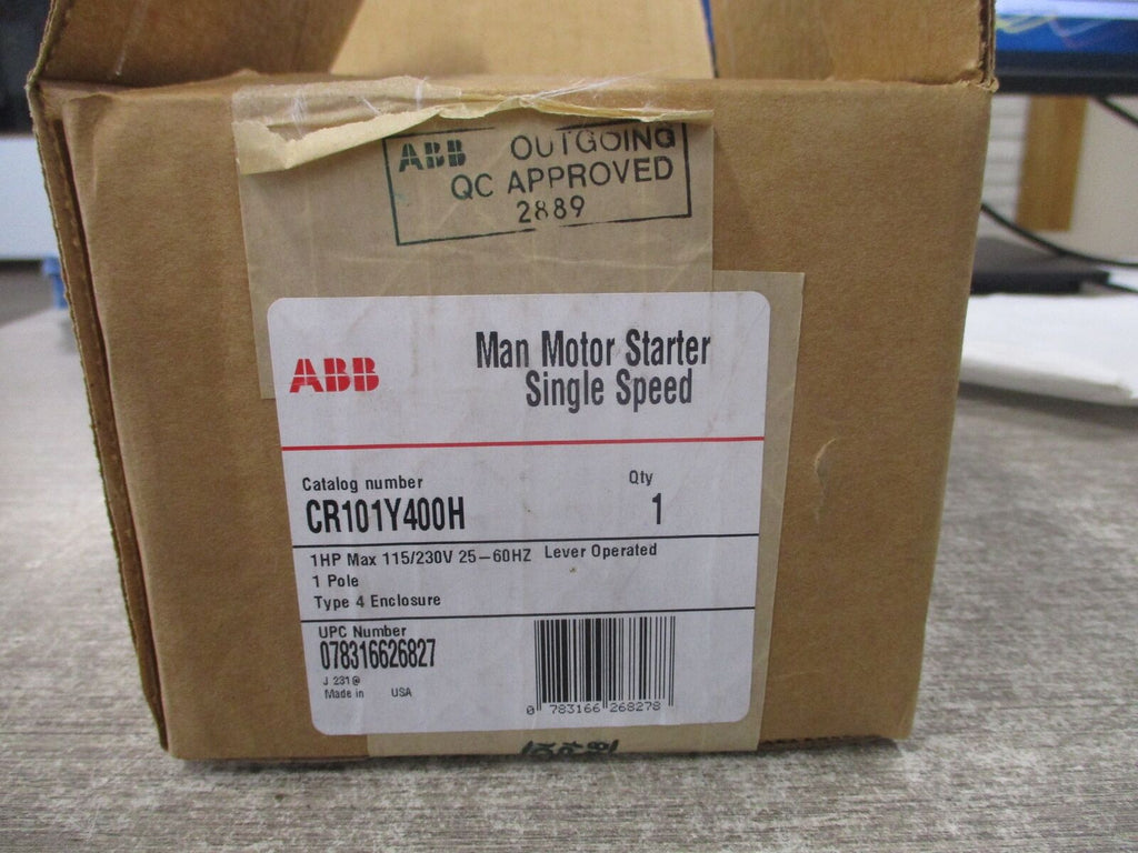 ABB Manual Starter CR101Y400H 115/230V 25-60Hz 1Ph 1P Type 4 Enclosure New Surplus_x000D_ ABB Manual Starter CR101Y400H 115/230V 25-60Hz 1Ph 1P Type 4 Enclosure New Surplus LOC 60A2-6