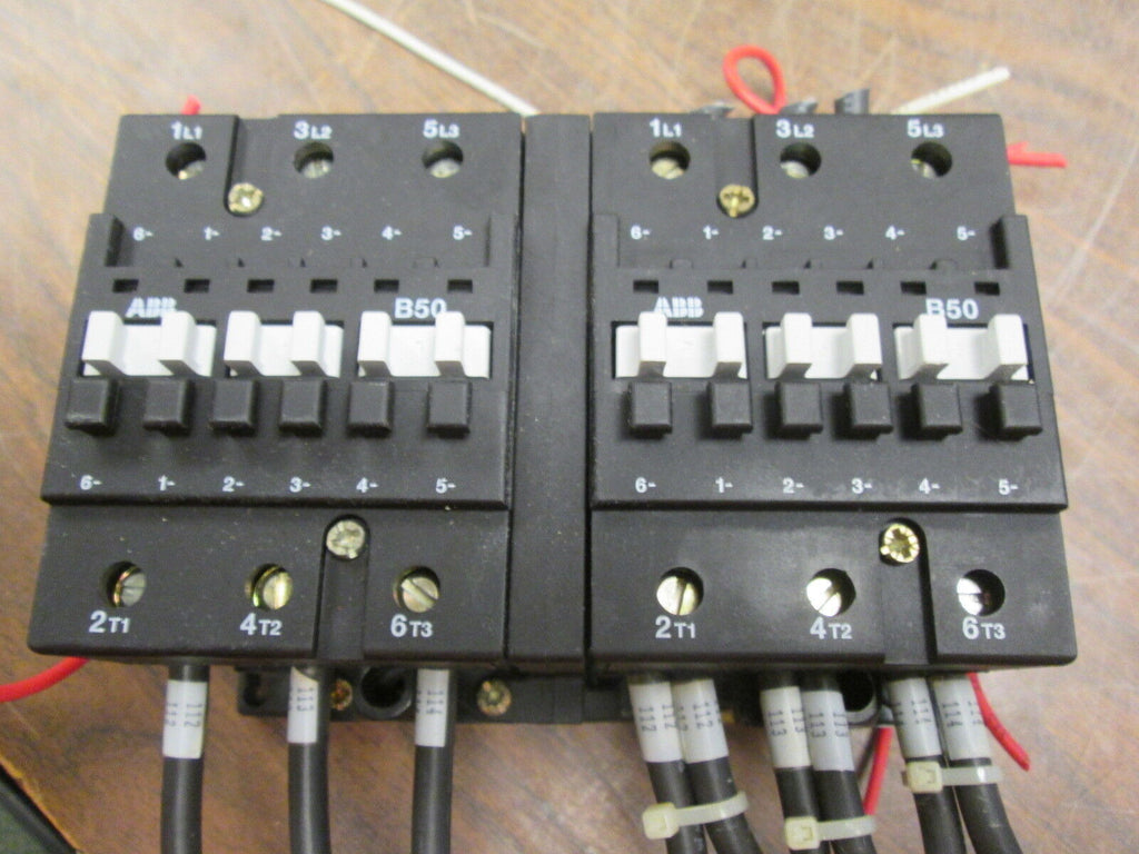 ABB Reversing Contactor B50 120V Coil 65A 600V w/ (2) Aux Contacts Used_x000D_ Condition: UsedBrand: ABBMPN: B50 ABB Reversing Contactor B50 120V Coil 65A 600V w/ (2) Aux Contacts Used Condition: UsedBrand: ABBMPN: B50 ABB Reversing Contactor Part #: B50 120V Coil 65A 600V w/ (2) Aux Contacts Used LOC 21E3-38