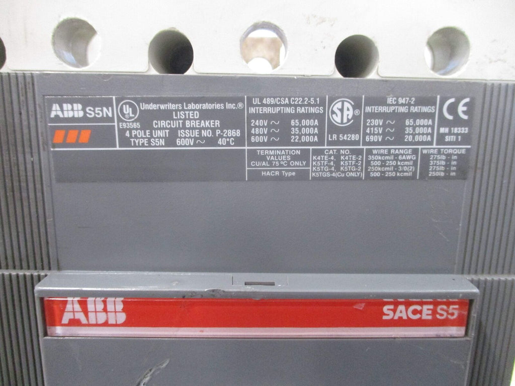 ABB SACE S5 Circuit Breaker S5N PR211 400A 600V 4P *No Stunt Trip Wires* Used
