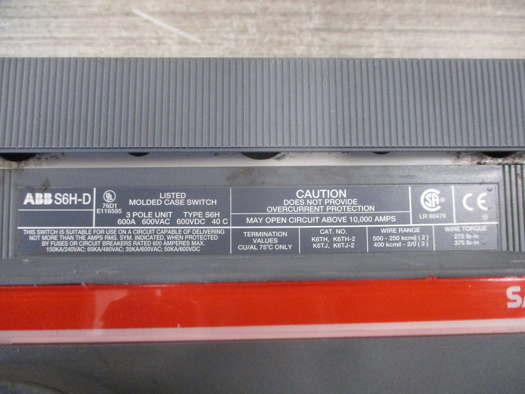 ABB SACE S6 Breaker Disconnect S6H-D 600 600A 600V 3P *N...