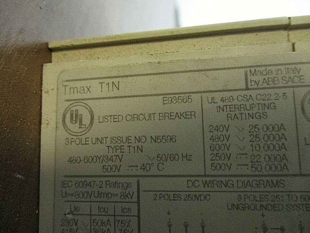 ABB SACE Tmax Breaker Disconnect T1N 80 80A 600V 3P Used ABB S...