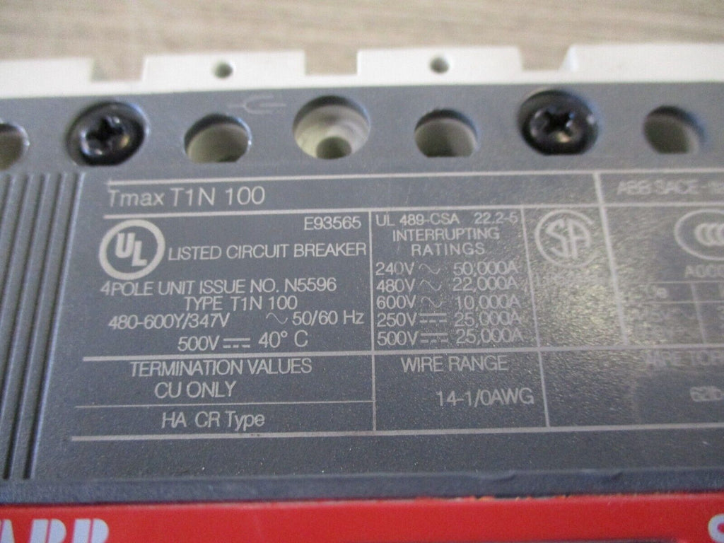 ABB SACE Tmax Circuit Breaker T1N 100 80A 600V 4P *No Mounting...