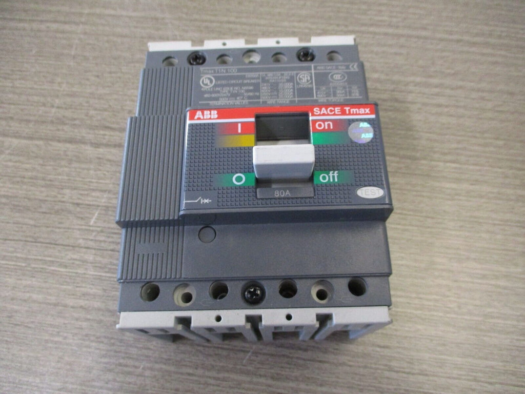 ABB SACE Tmax Circuit Breaker T1N 100 80A 600V 4P *No Mounting Screws* Used Condition: UsedBrand: ABBMPN: T1N 100Maximum Amperage: 80 AVoltage: 600 V ABB SACE Tmax Circuit Breaker T1N 100 80A 600V 4P *No Mounting Screws* Used ABB SACE Tmax Circuit Breaker Part #: T1N 100 80 A 600 V 4P*No Mounting Screws* Used Loc: 26F2-7 ABB SACE Tmax Circuit Breaker Part #: T1N 100 80 A 600 V 4P *No Mounting Screws* Uséd Loc: 26F2-7