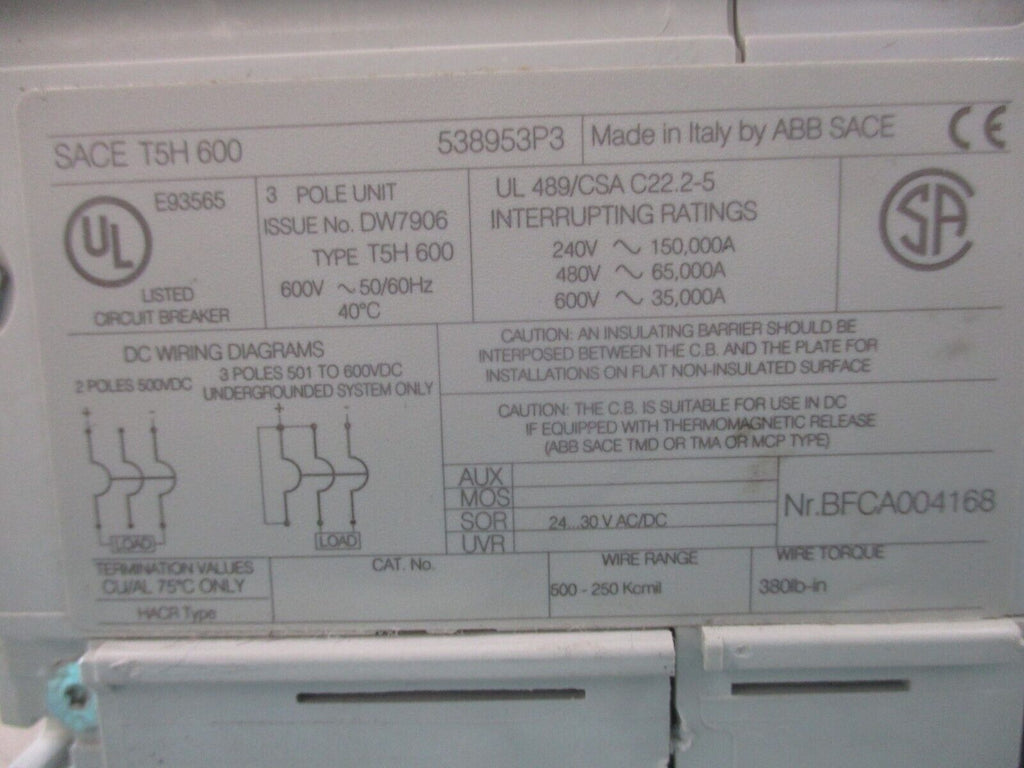 ABB SACE Tmax Circuit Breaker T5H 600 600A 600V 3P *No Lugs* U...