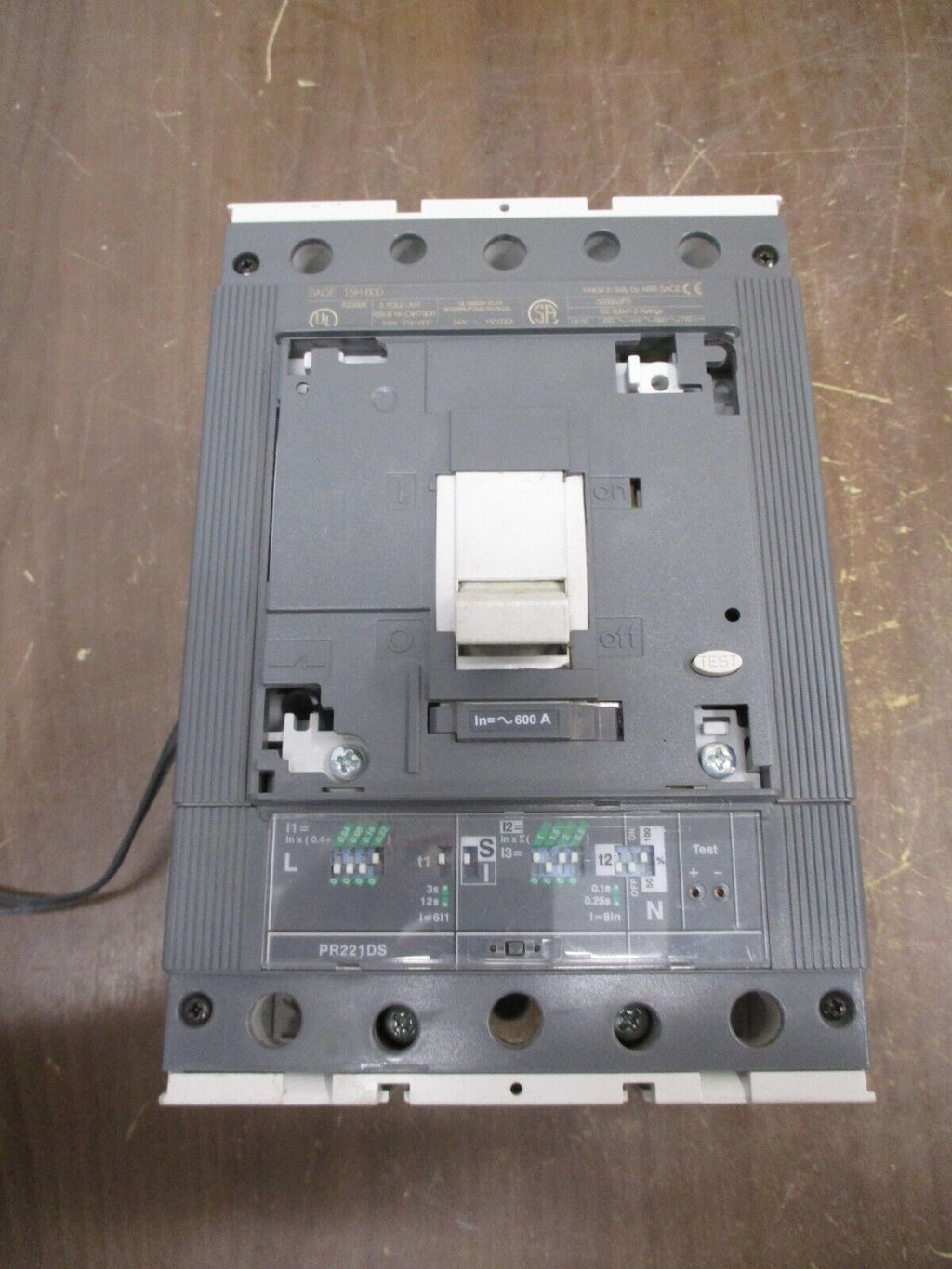ABB SACE Tmax Circuit Breaker T5H 600 600A 600V 3P w/ PR221DS Trip *No Lugs* ABB SACE Tmax Circuit Breaker Part #: T5H 600 600 A 600 V 3P w/ PR221DS Trip *No Lugs* * No Faceplate* Used Loc: 24F2-46 ABB SACE Tmax Circuit Breaker Part #: T5H 600 600 A 600 V 3P w/ PR221DS Trip *No Lugs* * No Faceplate* Uséd Loc: 24F2-46