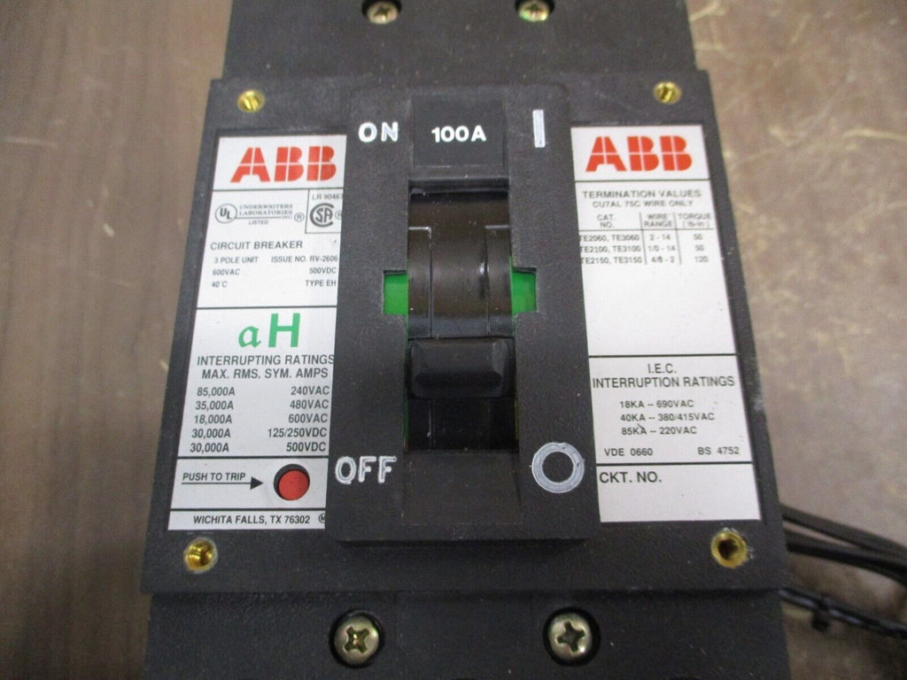 ABB Type EH Circuit Breaker EH-3P-100A 100A 600V 3P w/ Shunt Trip Used Condition: UsedBrand: ABBMPN: EH-3P-100AMaximum Amperage: 100 ANumber of Poles: 3Operation Method: On/OffVoltage: 600 V ABB Type EH Circuit Breaker EH-3P-100A 100A 600V 3P w/ Shunt Trip Used ABB Type EH Circuit Breaker Part #: EH-3P-100A 100 A 600 V 3P w/ Shunt Trip Used Loc: 24D3-66 ABB Type EH Circuit Breaker Part #: EH-3P-100A 100 A 600 V 3P w/ Shunt Trip Uséd Loc: 24D3-66