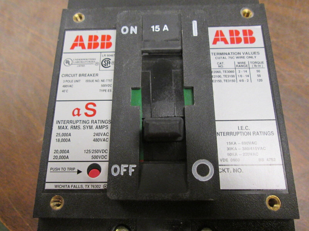 ABB Type ES Circuit Breaker UXAB 727131 R 101 15A 480V 3P Used_x000D_ Condition: UsedBrand: ABBMPN: UXAB 727131 R 101 ABB Type ES Circuit Breaker UXAB 727131 R 101 15A 480V 3P Used ABB Type ES Circuit Breaker Part #: UXAB 727131 R 101 15A 480V 3P UsedLOC 10E2-8 ABB Type ES Circuit Breaker Part #: UXAB 727131 R 101 15A 480V 3P Uséd LOC 10E2-8