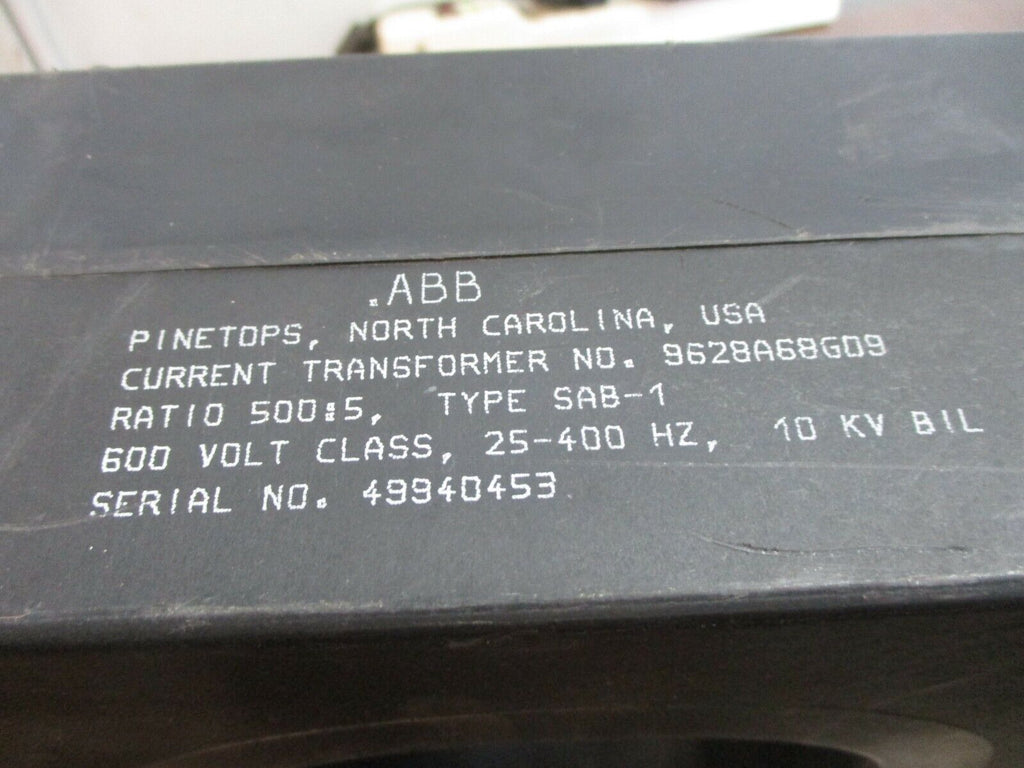 ABB Type SAB-1 Current Transformer 9628A68G09 Ratio 500:5A 600V 25-400Hz Used