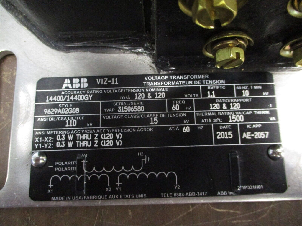 ABB VIZ-11 Voltage Transformer 9629A02G08 Pri: 14400V / 14400GY Sec: 120V 15kV