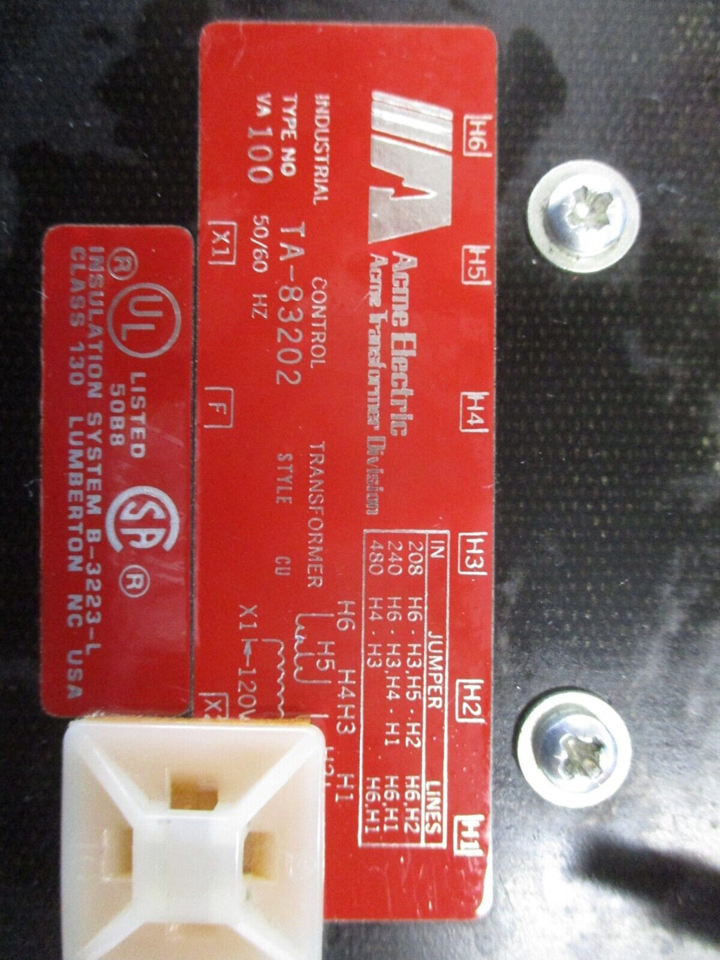Acme Electric Control Transformer TA-83202 100VA Pri: 208/240/480V Sec: 120/240V Acme Electric Control Transformer TA-83202 100VA Pri: 208/240/480V Sec: 120/240V50/60HzUsedLOC27L2-7 Acme Electric Control Transformer TA-83202 100VA Pri: 208/240/480V Sec: 120/240V50/60HzUsédLOC27L2-7