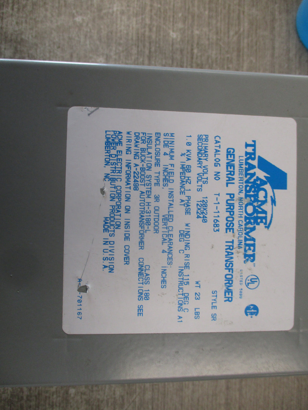 Acme Transformer  3R Transformer T-1-11683 1KVA Pri; 120/240V...