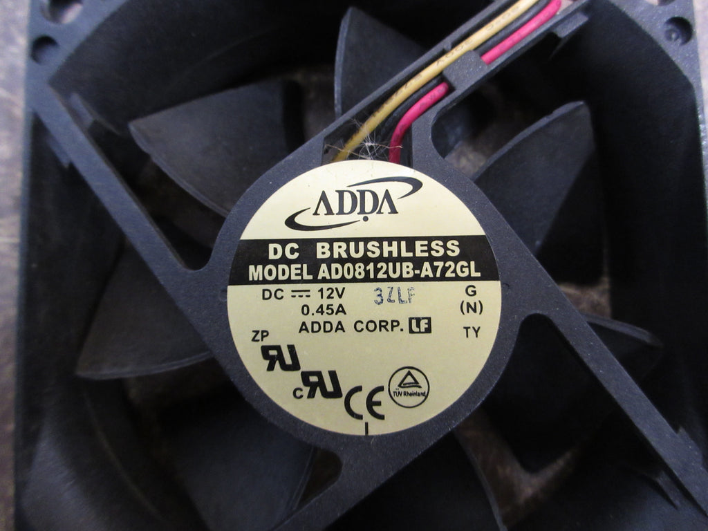 ADDA DC Brushless Axial Fan Part #: AD0812UB-A72GL 12 VDC 0.45 A Used Loc: 58H4-18