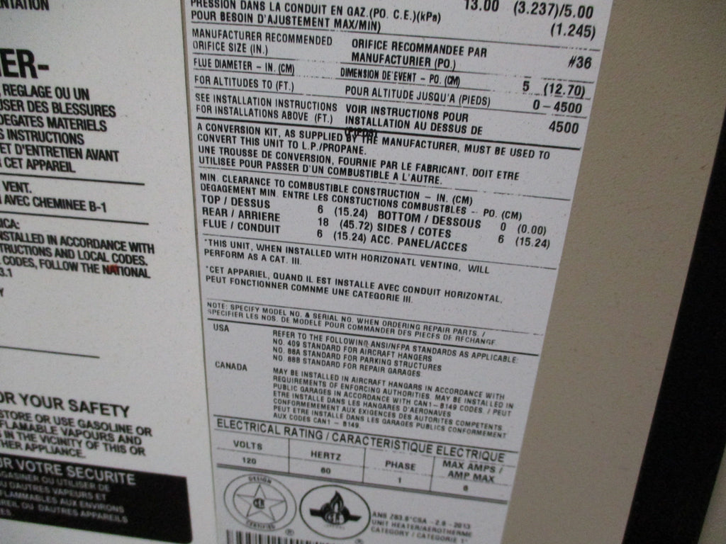 ADP Natural Gas Heater SEP-200A-3 195,000BTU Input Power Vented Used