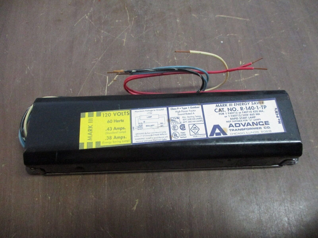 Advance Mark III Ballast R-140-1-TP 120V 60Hz New Surplus_x000D_ Condition: New – Open boxBrand: AdvanceMPN: R-140-1-TP Advance Mark III Ballast R-140-1-TP 120V 60Hz New Surplus Advance Mark III Ballast Part #: R-140-1-TP 120 V 60 Hz New Surplus Loc: 15C3-43 Advance Mark III Ballast Part #: R-140-1-TP 120 V 60 Hz New Surplus Loc: 15C3-43