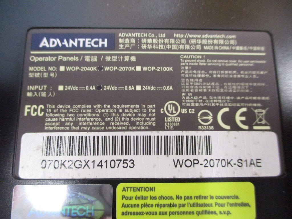 Advantech Operator Panel WOP-2070K-S1AE 24VDC 0.6A *No Mounts* Used