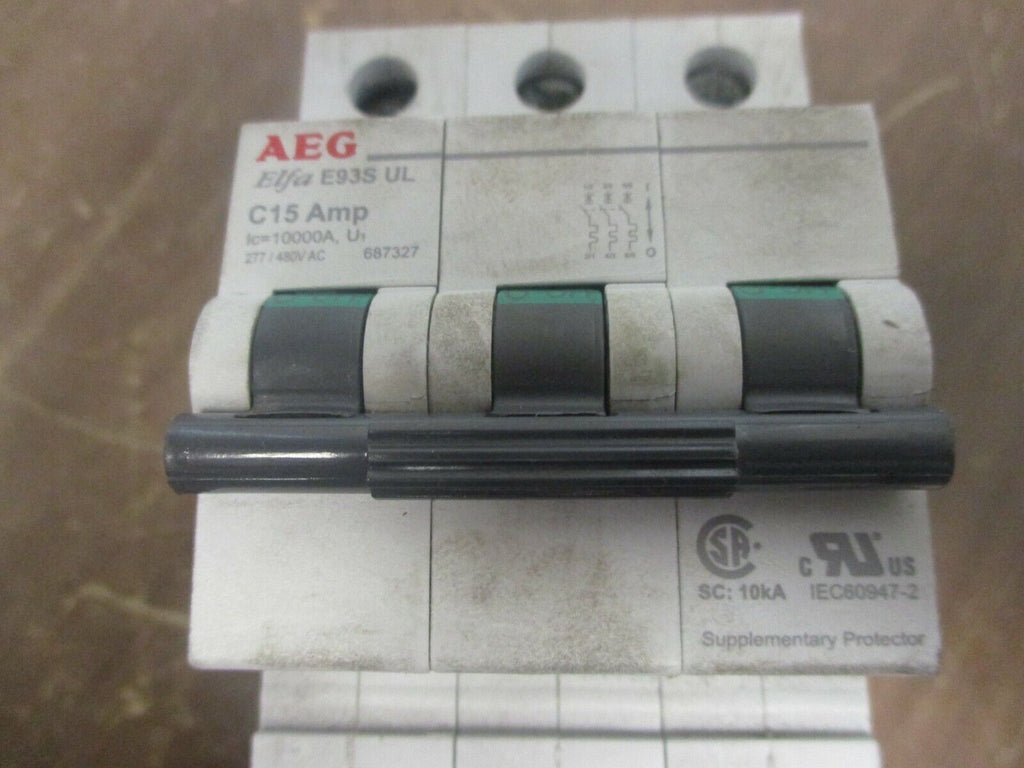 AEG Elfa Circuit Breaker E93S UL C15 15A 277/480V 3P Used_x000...