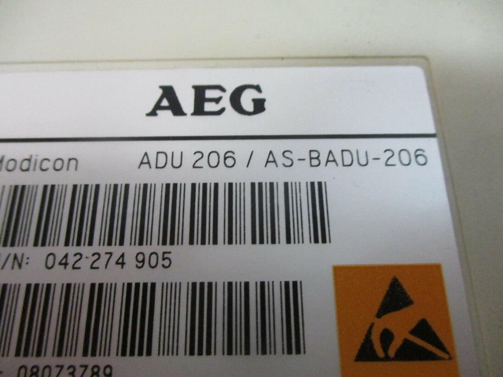AEG Modicon Analog Input Module ADU 206 / AS-BADU-206 Fast Input 4X 10V 20mA AEG Modicon Analog Input Module Part #: ADU 206 / AS-BADU-206 Fast Input 4X 10 V 20mA Used Loc: 17I2-30 AEG Modicon Analog Input Module Part #: ADU 206 / AS-BADU-206 Fast Input 4X 10 V 20mA Uséd Loc: 17I2-30